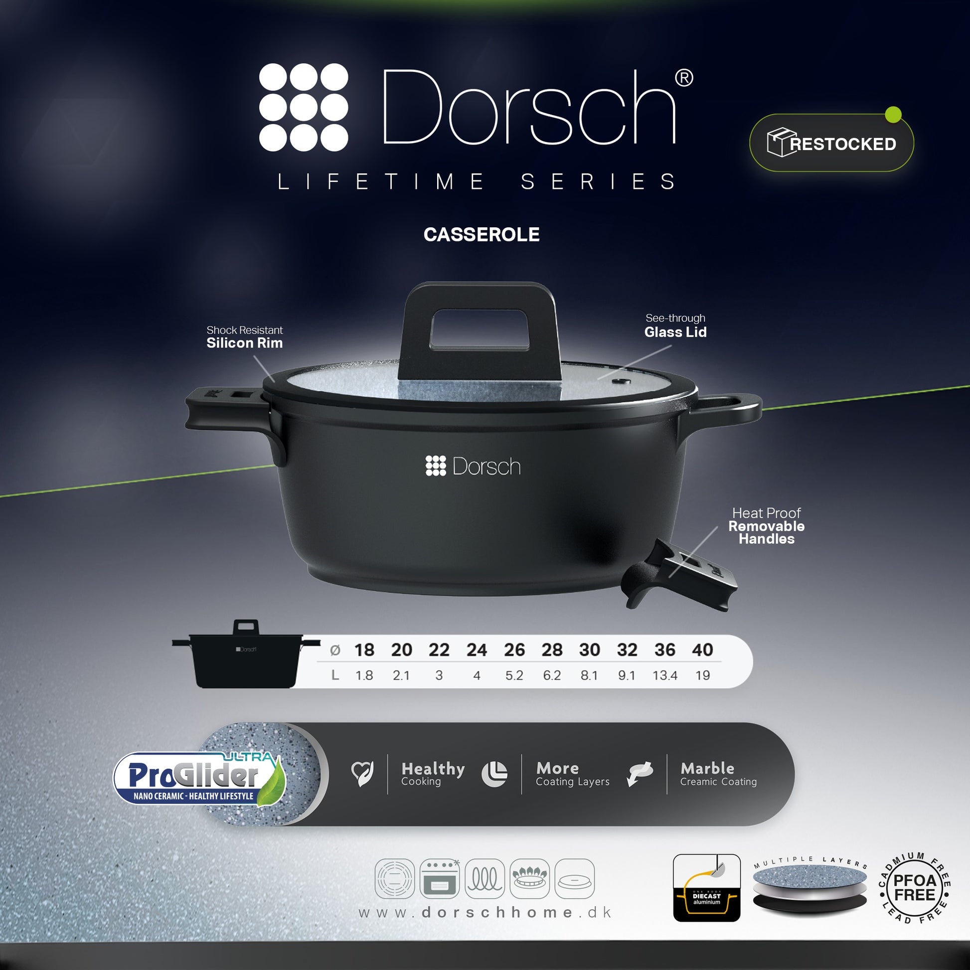 Crafted from high-quality aluminum with a durable marble ceramic coating, these casseroles ensure healthy cooking with minimal oil, easy food release, and effortless cleaning. The deep-body design provides generous capacity, making them ideal for stews, soups, rice, pasta, and slow-cooked meals.