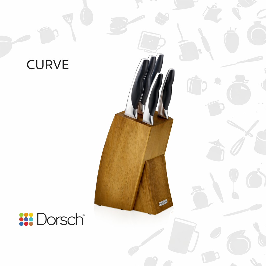Upgrade your kitchen with the Dorsch Curve Knives Set, designed for precision cutting, comfort, and modern elegance. Crafted to German quality standards, this knife set features sharp stainless-steel blades, ergonomically curved handles, and a stylish wooden stand that keeps your workspace organized and safe.
