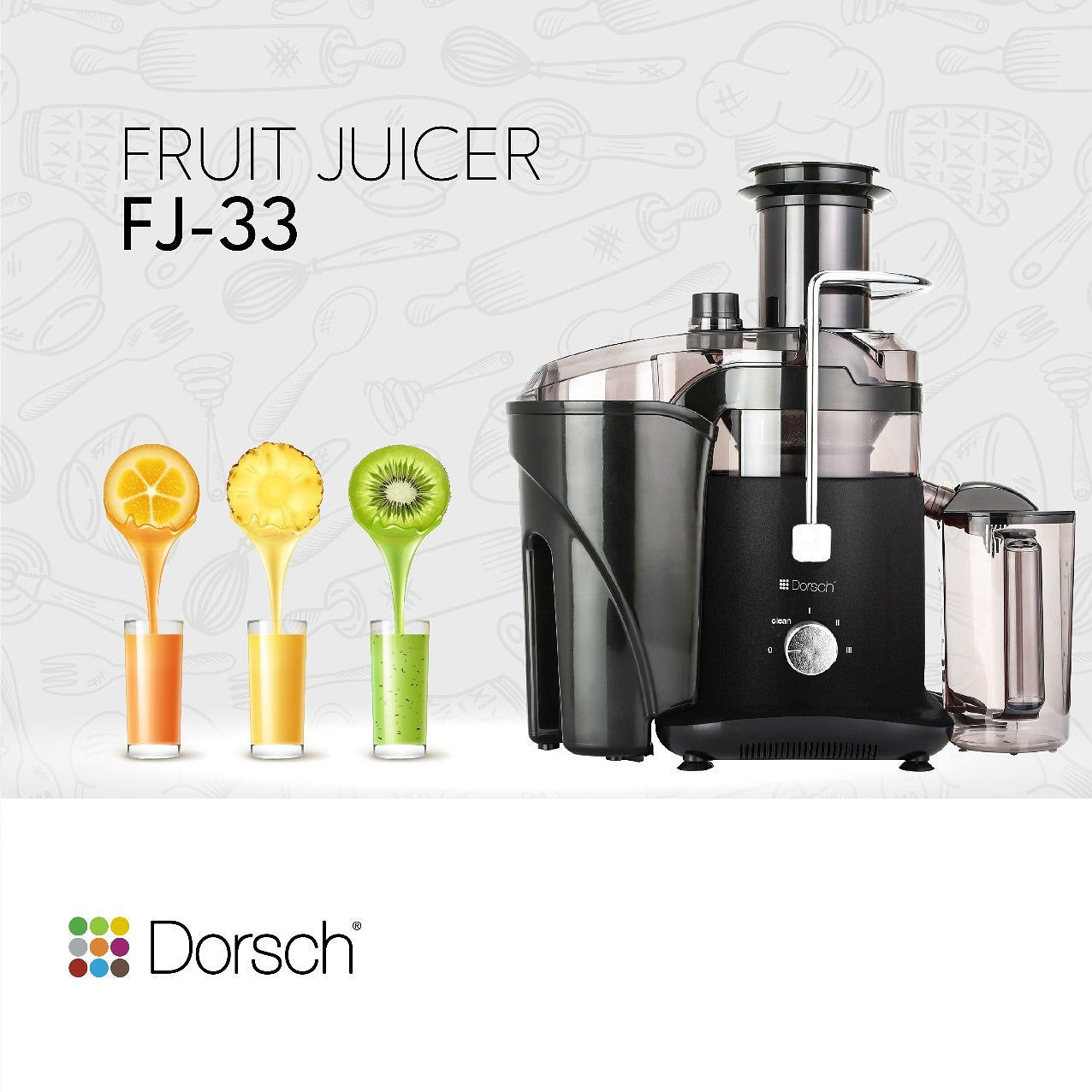 Powerful and stylish fruit juicer designed to deliver fresh, healthy juice every day. Engineered for efficiency and ease of use, this juicer combines strong performance with a modern design that fits perfectly in any kitchen.