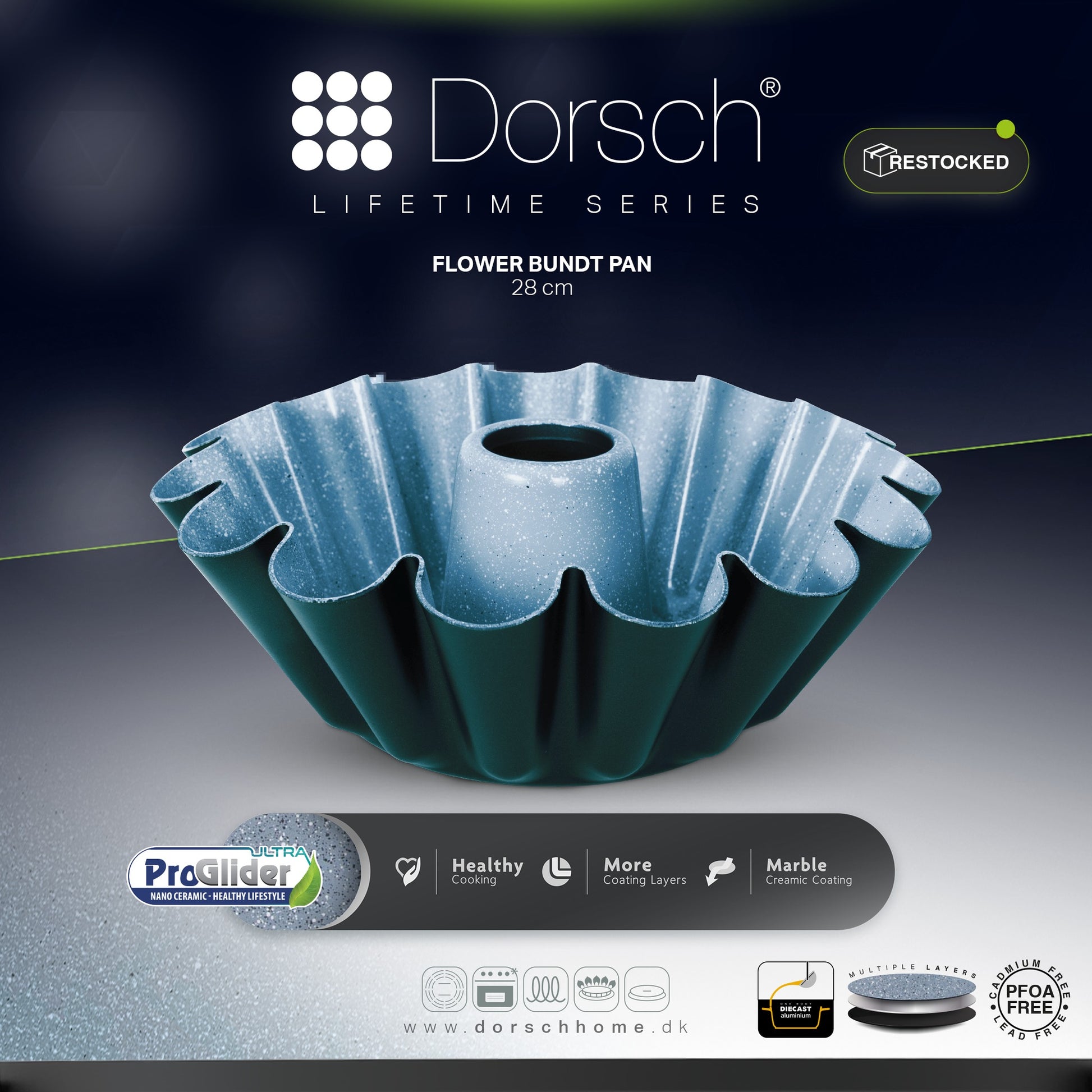 Create beautifully shaped cakes with ease using the Dorsch® Lifetime Series Flower Cake Pan. Designed for both performance and elegance, this premium cake pan features a stunning fluted flower shape and advanced marble ceramic non-stick coating for effortless release and perfect results every time.